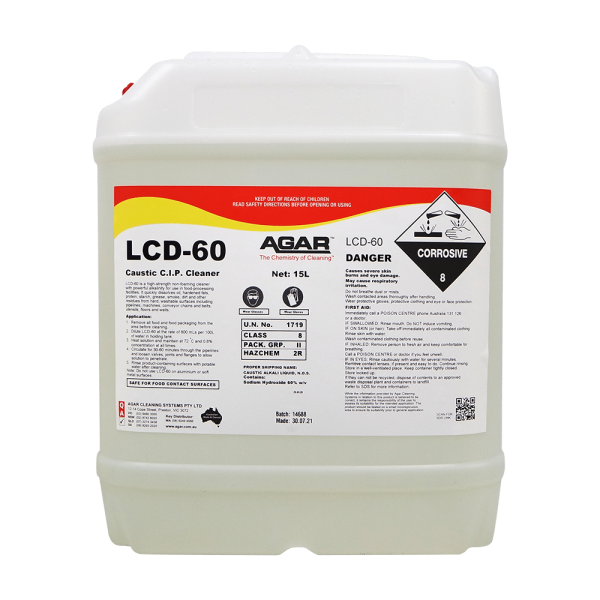Agar LCD-60 is a highly concentrated, extra heavy-duty alkaline cleaner designed for the toughest industrial and commercial cleaning tasks. With powerful caustic agents and grease-cutting action, it rapidly dissolves heavy carbon, baked-on fats, oils, and protein soils. Ideal for environments where deep cleaning and degreasing are critical.