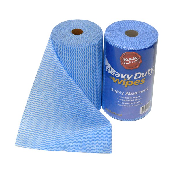 Heavy-duty reusable cleaning wipes 30cm x 45m roll in 50cm, perforated sheets 90 sheets per roll.