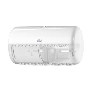 The Tork Jumbo Toilet Roll Dispenser in Elevation Design is suitable for high traffic locations. Its extra high capacity saves maintenance time and ensures that paper is always available. Tork Elevation dispensers have a functional, modern design, that makes a lasting impression on your guests.